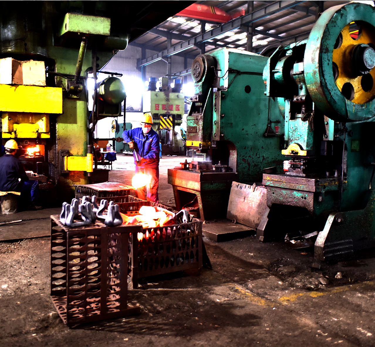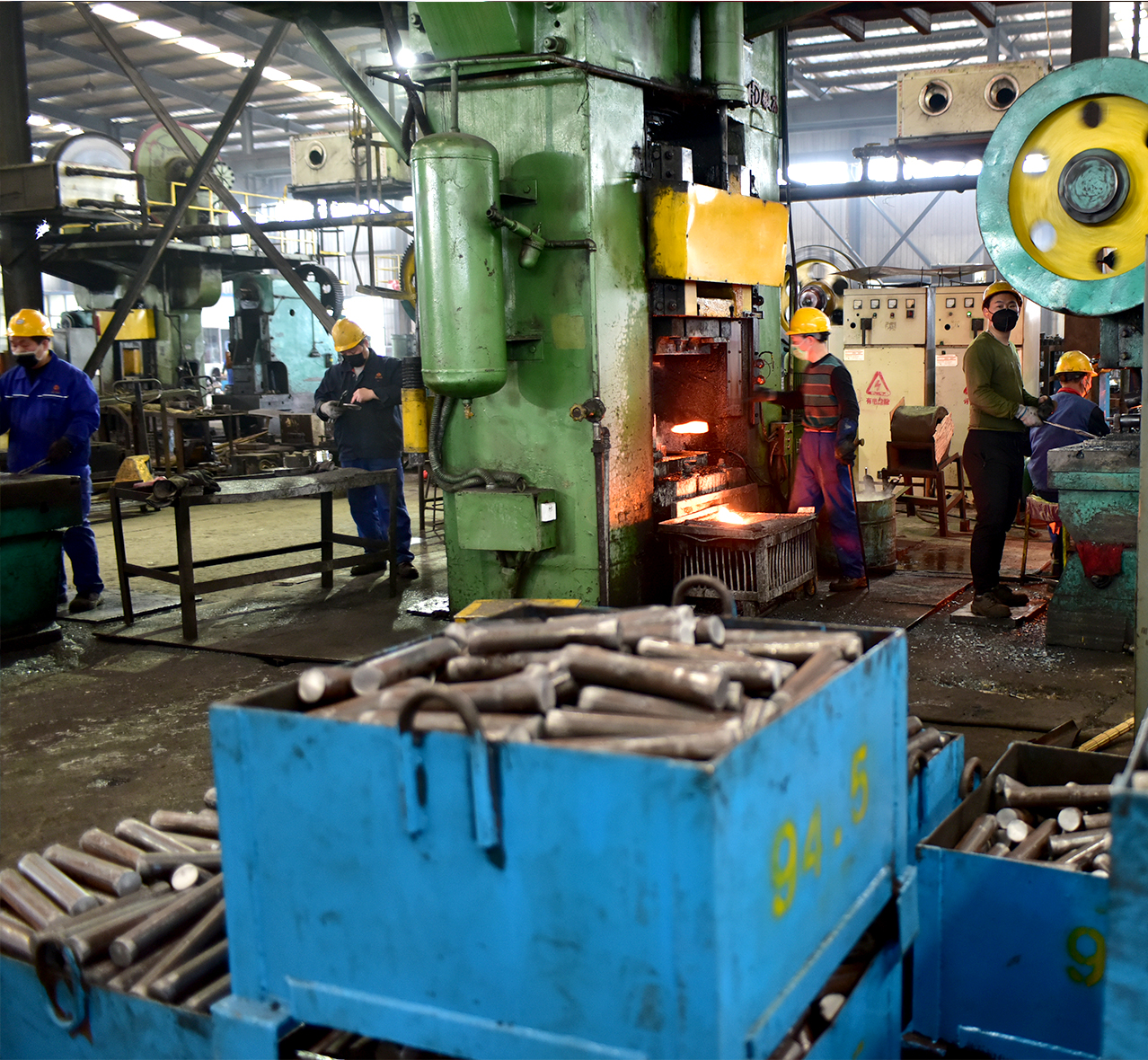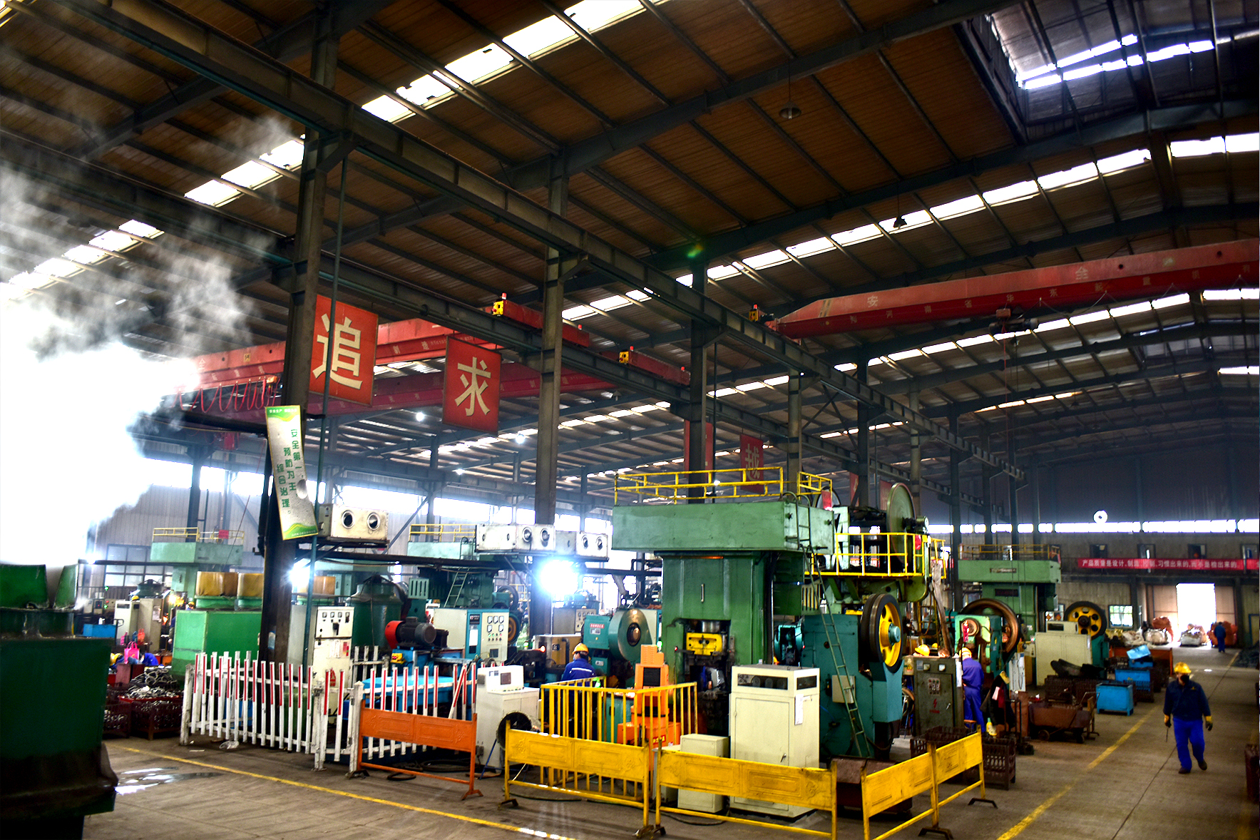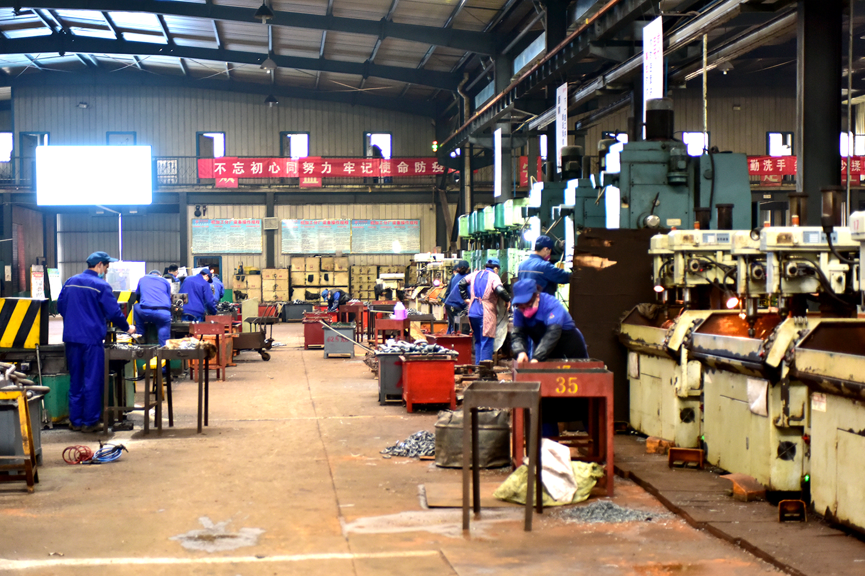按下“生產(chǎn)鍵”后,各生產(chǎn)車間機器轟鳴作響,鍛打、切割的聲音不絕于耳。生產(chǎn)線上各道工序無縫對接,工作人員全部配戴口罩,有的爭分奪秒運輸材料,有的全神貫注地操作著機器,有的仔細的測量著各種數(shù)據(jù),以昂揚的姿態(tài)和飽滿的熱情在各自的崗位上恪盡職守,散熱發(fā)光,為來自海內(nèi)外的訂單趕工,一派熱火朝天、緊張有序的生產(chǎn)氛圍。