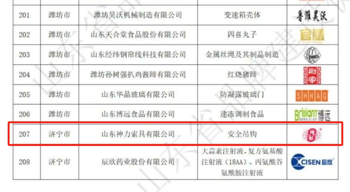 根據(jù)《山東知名品牌認(rèn)定管理辦法》的規(guī)定,遵循科學(xué)、客觀、公開、公平、公正、自愿、不收費(fèi)的原則,經(jīng)組織申報(bào)、資格審查、大數(shù)據(jù)信息挖掘、信息化系統(tǒng)平臺(tái)評(píng)審、專家評(píng)審、認(rèn)定專家委員會(huì)審議等工作程序,神力索具安全吊鉤榜上有名,光榮入選“山東知名品牌(產(chǎn)品)認(rèn)定名單”。