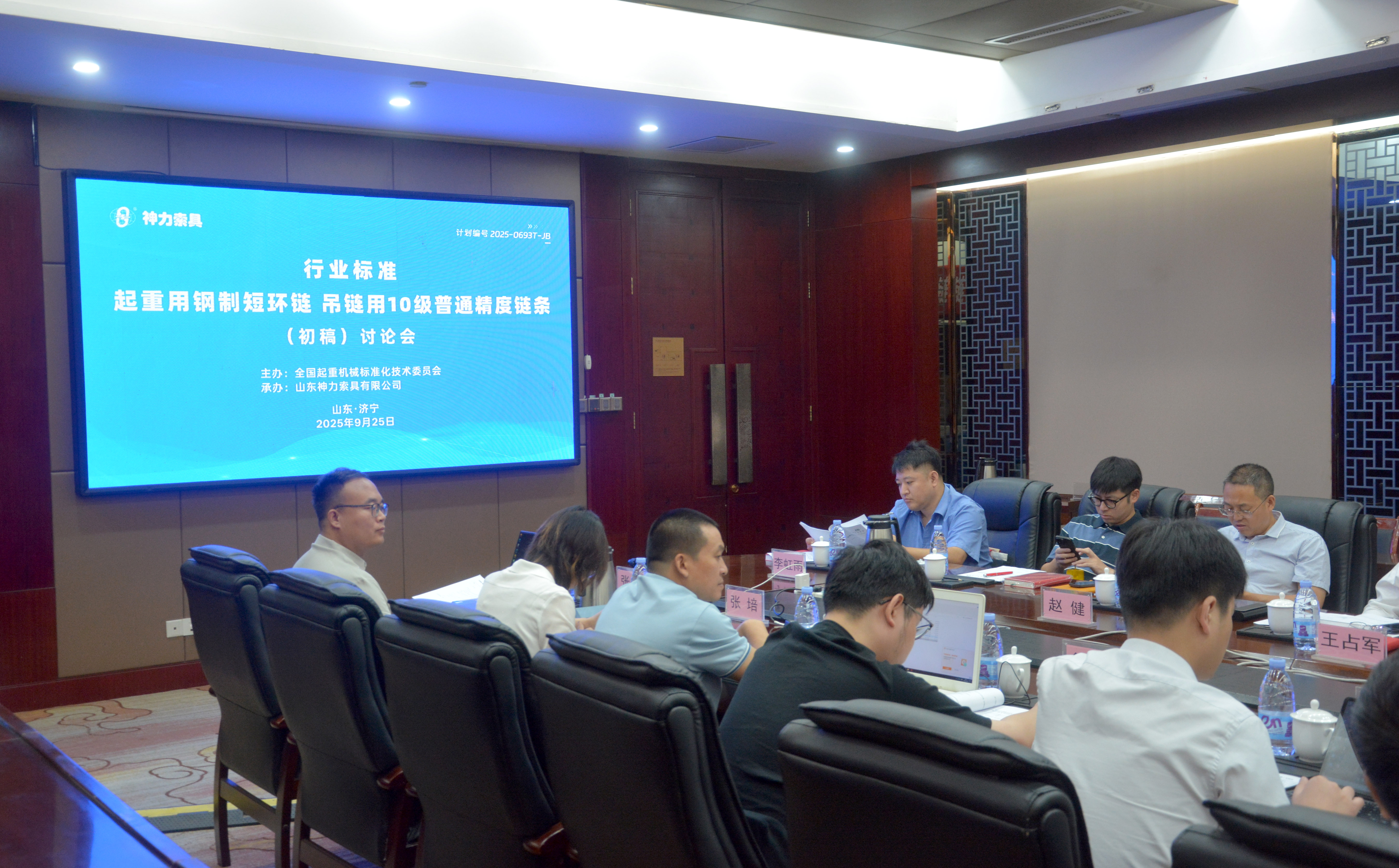 9月24日至26日,由全國起重機械標準化技術委員會主辦、山東神力索具有限公司主導起草的《起重用鋼制短環(huán)鏈 吊鏈用10級普通精度鏈條》行業(yè)標準初稿討論會在山東濟寧成功舉辦。