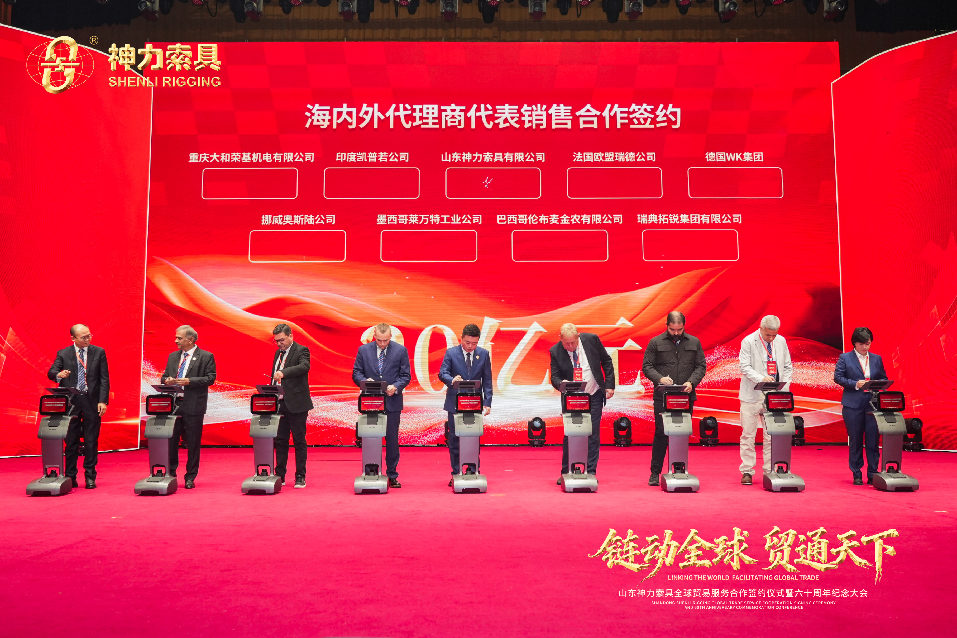 六十年風(fēng)雨兼程,一甲子春華秋實。10月26日,以“六十載崢嶸歲月 新征程再譜華章”為主題的神力索具全球貿(mào)易服務(wù)合作簽約儀式暨六十周年紀(jì)念大會隆重舉行。這一刻,閃耀著神力索具六十載奮斗的熠熠光輝,承載著企業(yè)對未來的美好憧憬。政府領(lǐng)導(dǎo)、合作伙伴、國內(nèi)外客戶及公司員工代表齊聚一堂,共慶神力索具六十華誕,共同見證神力索具全球貿(mào)易服務(wù)合作簽約的重要時刻。場內(nèi)洋溢著喜慶熱烈的氛圍,每一個角落都訴說著企業(yè)六十年來的成長與蛻變。