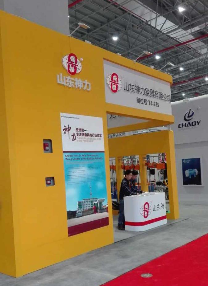 山東神力索具公司展出的部分產(chǎn)品有:G100 G80雙環(huán)扣、G100 G80吊鉤抓鉤翅鉤、卸扣、起重鏈條、成套吊具、普通索具,強力環(huán)子母環(huán),D型環(huán)焊接吊環(huán),旋轉(zhuǎn)吊環(huán),旋轉(zhuǎn)鉤,安全鉤等。并邀請了本公司眾多國內(nèi)外客戶前來展會現(xiàn)場洽談業(yè)務(wù)。