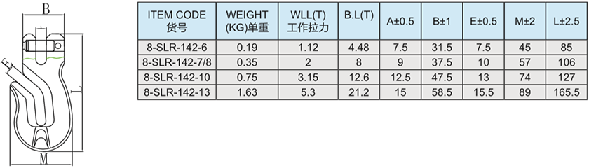 表格所列工作拉力是在側(cè)拉情況下的工作拉力。