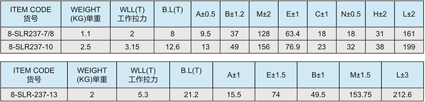 常規(guī)標記:10-8  WLL3.15T  CE  SLR  + BATCH NUMBER(批號)