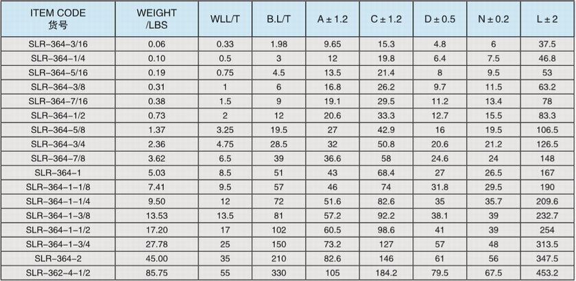 常規(guī)標(biāo)記:  3/8 WLL1T  CE  SLR